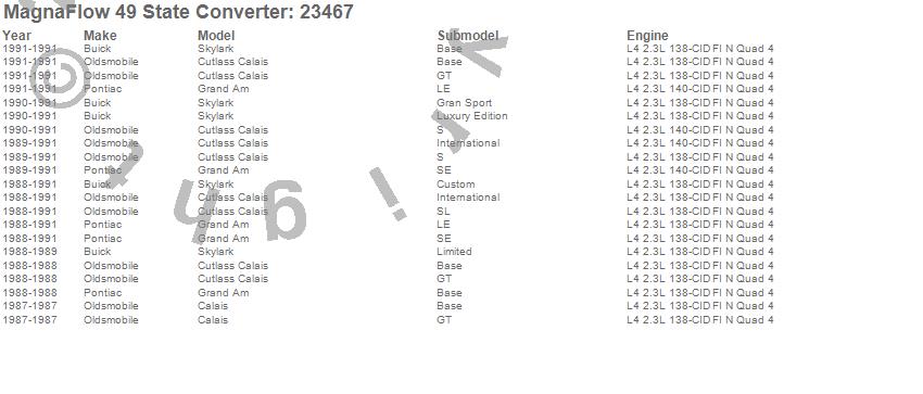 Below is an abreviated list of applications for the Direct Fit Catalytic Converter.