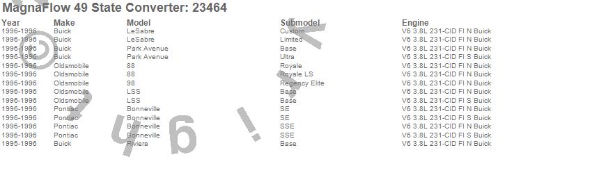 Below is an abreviated list of applications for the Direct Fit Catalytic Converter.