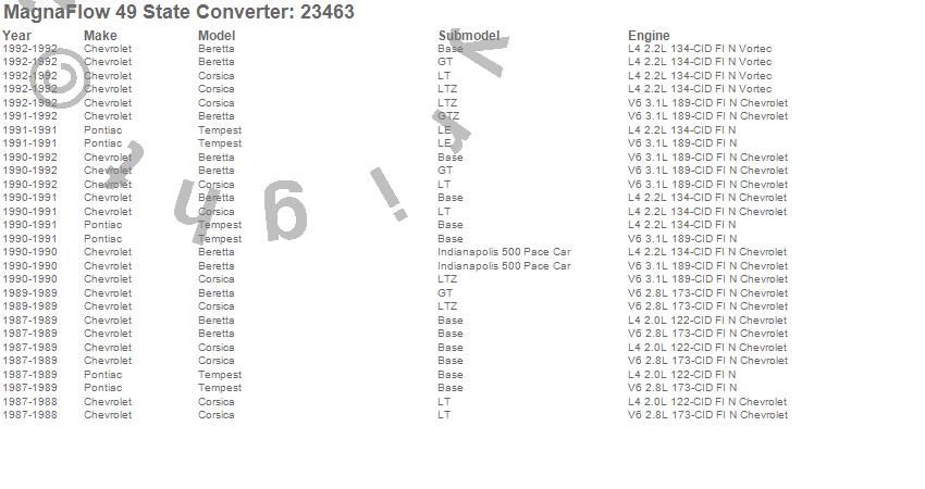 Below is an abreviated list of applications for the Direct Fit Catalytic Converter.