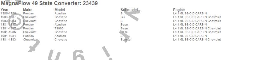 Below is an abreviated list of applications for the Direct Fit Catalytic Converter.