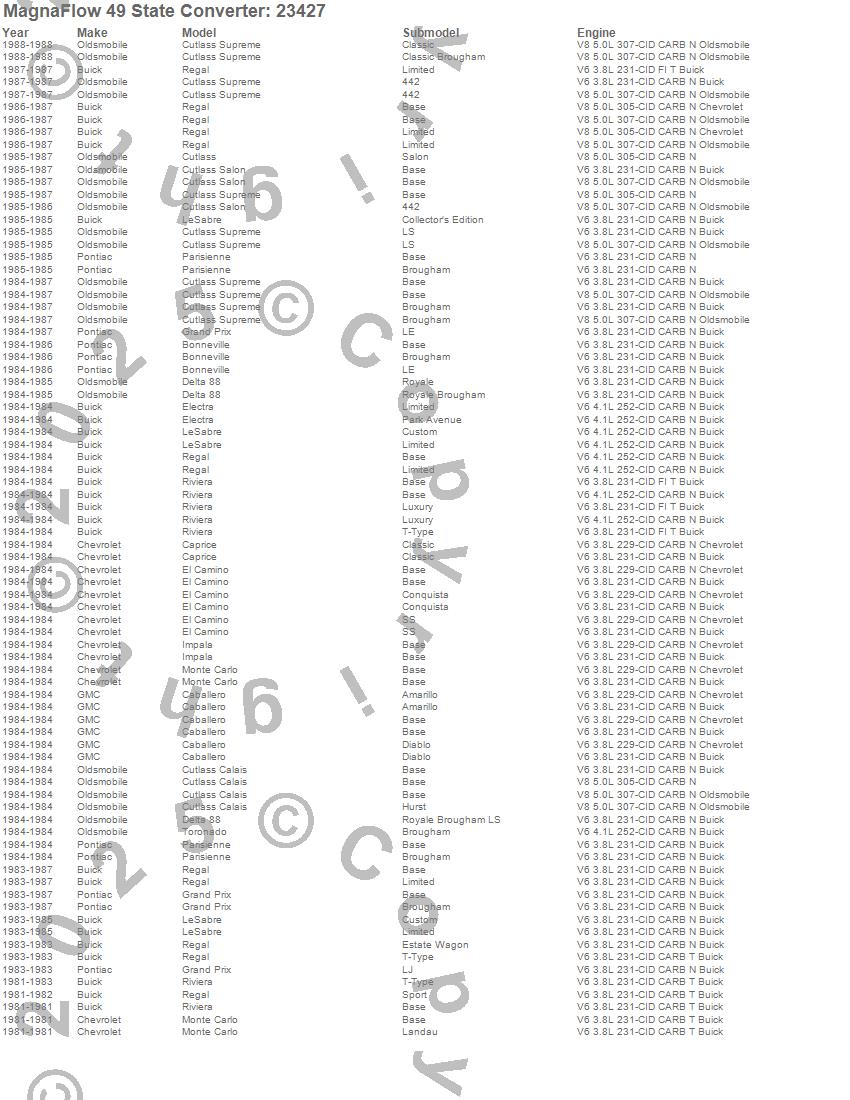 Below is an abreviated list of applications for the Direct Fit Catalytic Converter.