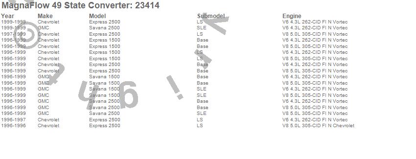Below is an abreviated list of applications for the Direct Fit Catalytic Converter.