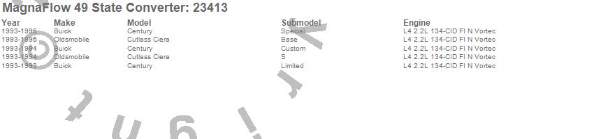 Below is an abreviated list of applications for the Direct Fit Catalytic Converter.