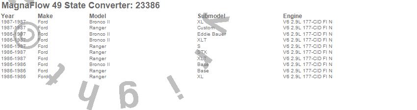 Below is an abreviated list of applications for the Direct Fit Catalytic Converter.