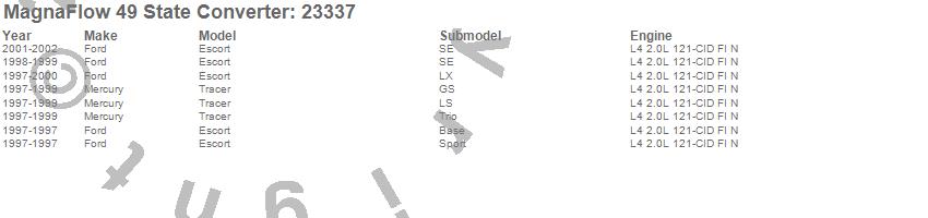 Below is an abreviated list of applications for the Direct Fit Catalytic Converter.