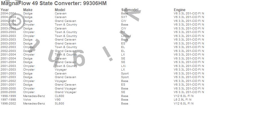 Below is an abreviated list of applications for the Heavy Metal Series Universal Catalytic Converter.