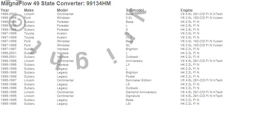 Below is an abreviated list of applications for the Heavy Metal Series Universal Catalytic Converter.