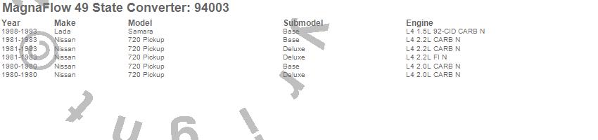 Below is an abreviated list of applications for the 94000 Series OBDII Compliant Universal Catalytic Converter.