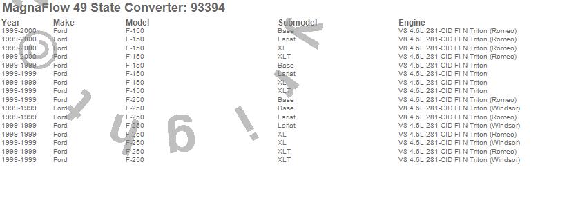 Below is an abreviated list of applications for the Direct Fit Catalytic Converter.