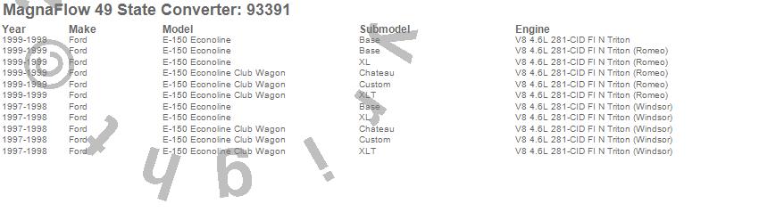Below is an abreviated list of applications for the Direct Fit Catalytic Converter.