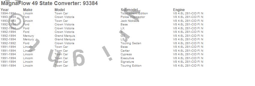 Below is an abreviated list of applications for the 93000 Series OBDII Compliant Direct Fit Catalytic Converter.