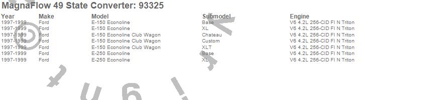 Below is an abreviated list of applications for the 93000 Series OBDII Compliant Direct Fit Catalytic Converter.