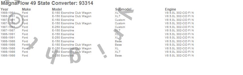 Below is an abreviated list of applications for the 93000 Series OBDII Compliant Direct Fit Catalytic Converter.