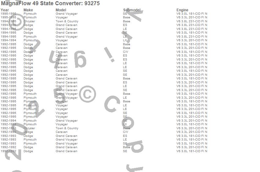 Below is an abreviated list of applications for the 93000 Series OBDII Compliant Direct Fit Catalytic Converter.