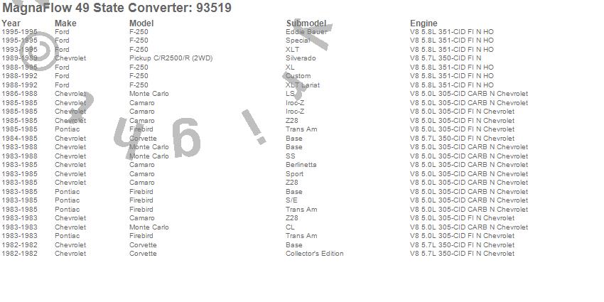 Below is an abreviated list of applications for the 93500 Series Single Air Tube Non-OBDII Universal Catalytic Converter.