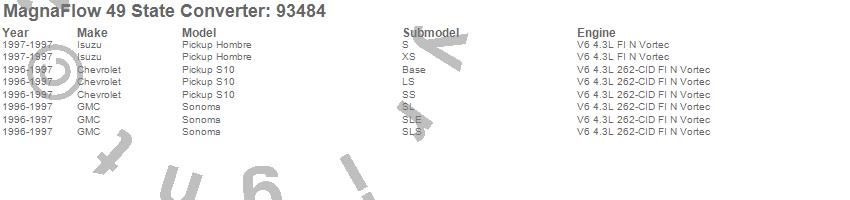 Below is an abreviated list of applications for the 93000 Series OBDII Compliant Direct Fit Catalytic Converter.