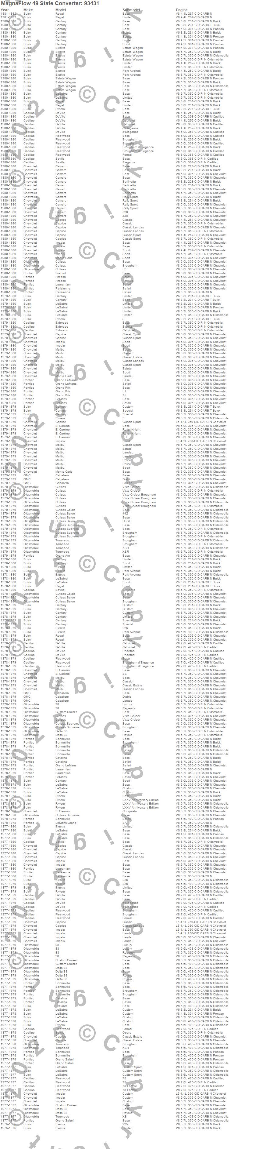 Below is an abreviated list of applications for the 93000 Series OBDII Compliant Direct Fit Catalytic Converter.