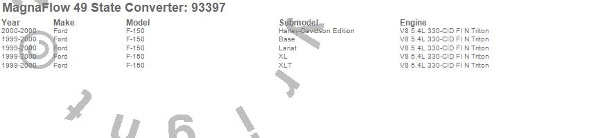 Below is an abreviated list of applications for the 93000 Series Direct Fit Catalytic Converter.