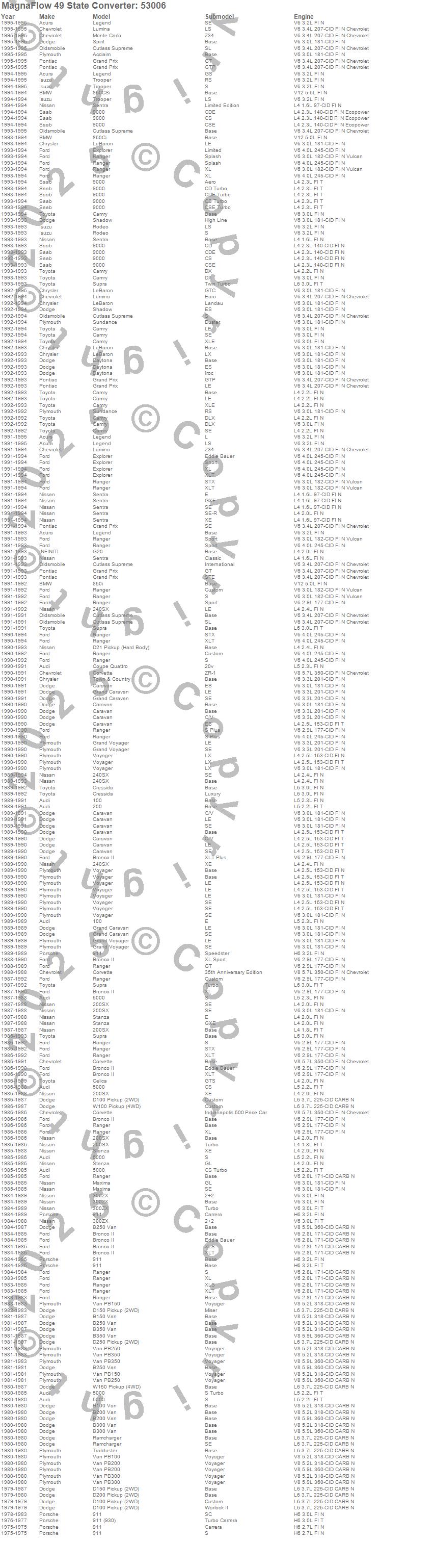 Below is an abreviated list of applications for the 53000 Series OBDII Compliant Universal Catalytic Converter.