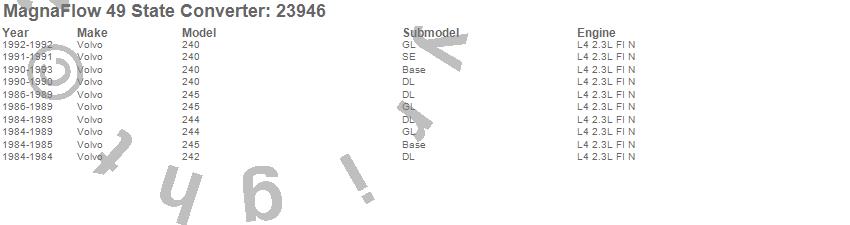 Below is an abreviated list of applications for the Direct Fit Catalytic Converter.