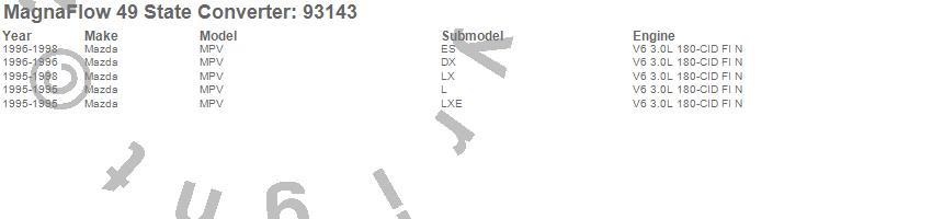 Below is an abreviated list of applications for the 93000 Series OBDII Compliant Direct Fit Catalytic Converter.