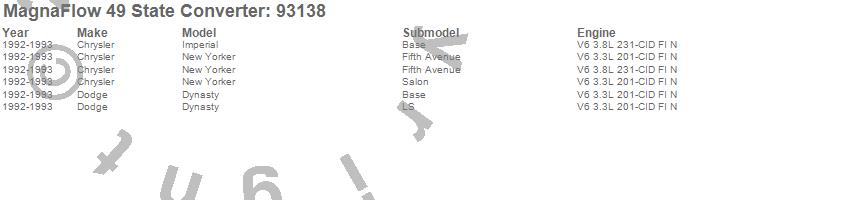 Below is an abreviated list of applications for the 93000 Series OBDII Compliant Direct Fit Catalytic Converter.