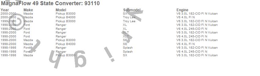 Below is an abreviated list of applications for the 93000 Series OBDII Compliant Direct Fit Catalytic Converter.