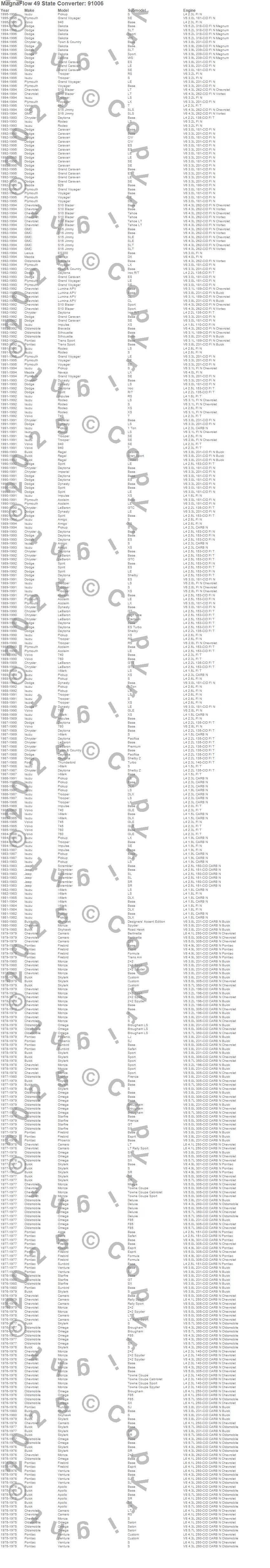 Below is an abreviated list of applications for the 91000 Series OBDII Compliant Universal Catalytic Converter.