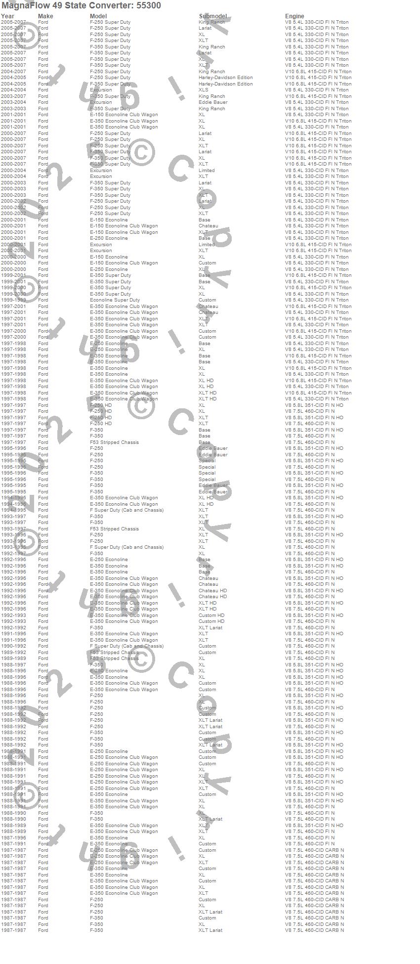 Below is an abreviated list of applications for the Universal-Fit Catalytic Converter.