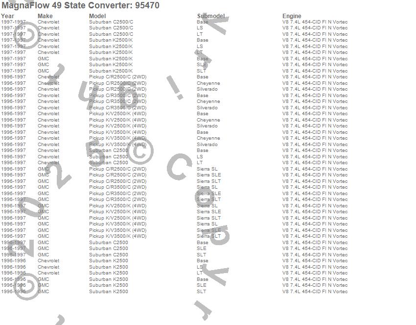 Below is an abreviated list of applications for the 95000 Series OBDII Compliant Direct Fit Catalytic Converter.