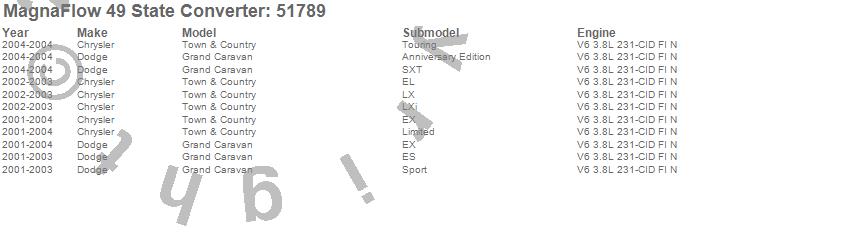 Below is an abreviated list of applications for the Direct Fit Catalytic Converter.