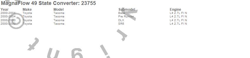 Below is an abreviated list of applications for the Direct Fit Catalytic Converter.