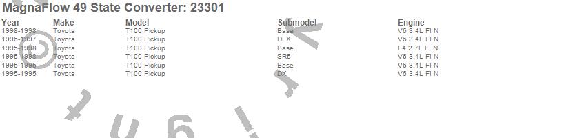 Below is an abreviated list of applications for the Direct Fit Catalytic Converter.