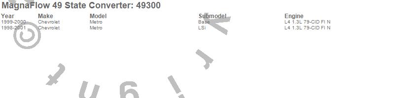Below is an abreviated list of applications for the Direct Fit Catalytic Converter.
