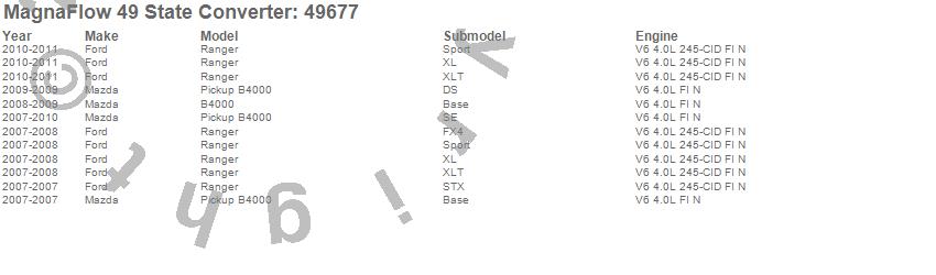 Below is an abreviated list of applications for the Direct Fit Catalytic Converter.