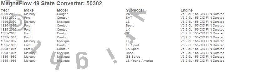 Below is an abreviated list of applications for the Direct Fit Catalytic Converter.