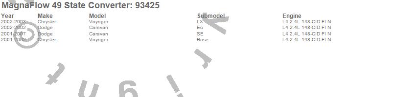Below is an abreviated list of applications for the 93000 Series Direct Fit Catalytic Converter.
