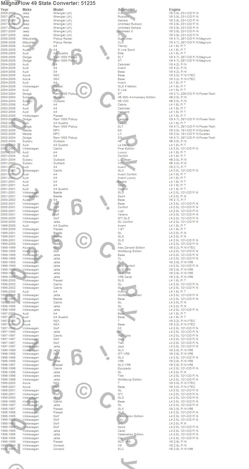 Below is an abreviated list of applications for the Universal-Fit Catalytic Converter.