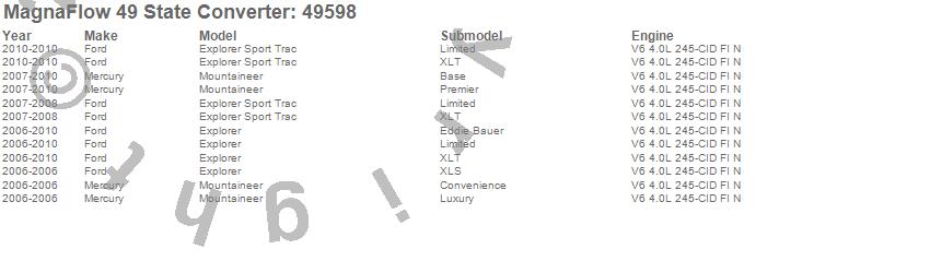 Below is an abreviated list of applications for the Direct Fit Catalytic Converter.