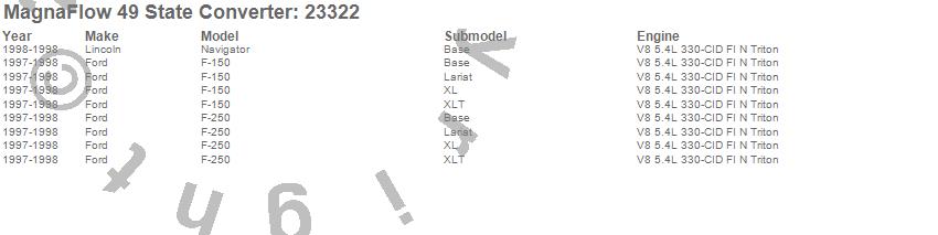 Below is an abreviated list of applications for the Direct Fit Catalytic Converter.