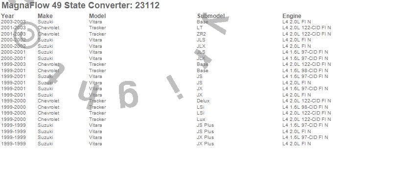 Below is an abreviated list of applications for the Direct Fit Catalytic Converter.