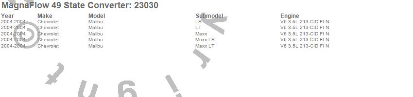Below is an abreviated list of applications for the Direct Fit Catalytic Converter.