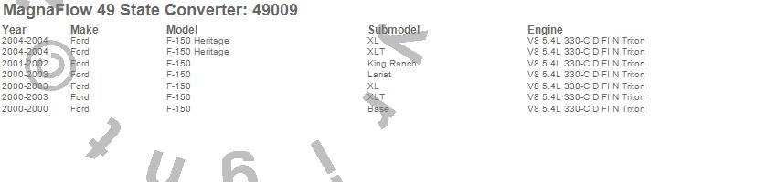 Below is an abreviated list of applications for the Direct Fit Catalytic Converter.