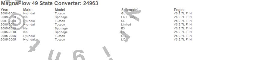 Below is an abreviated list of applications for the Direct Fit Catalytic Converter.