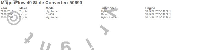Below is an abreviated list of applications for the Direct Fit Catalytic Converter.