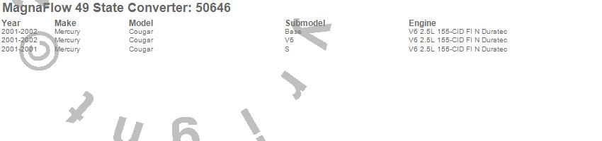 Below is an abreviated list of applications for the Direct Fit Catalytic Converter.