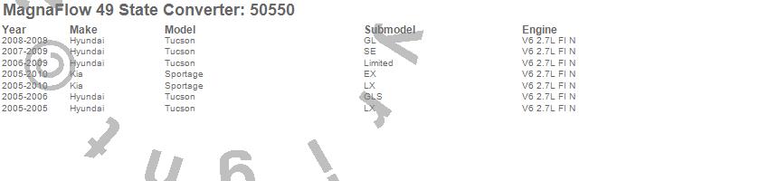 Below is an abreviated list of applications for the Direct Fit Catalytic Converter.