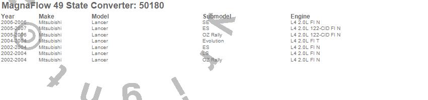 Below is an abreviated list of applications for the Direct Fit Catalytic Converter.