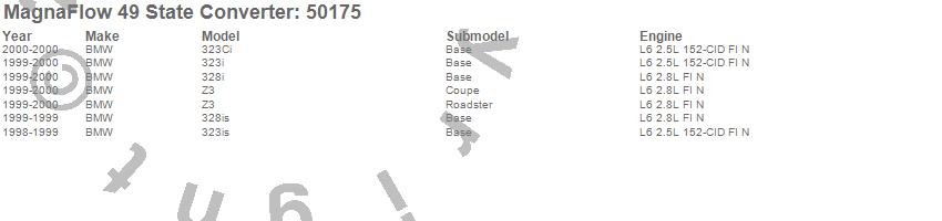 Below is an abreviated list of applications for the Direct Fit Catalytic Converter.