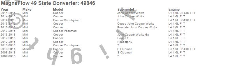 Below is an abreviated list of applications for the Direct Fit Catalytic Converter.